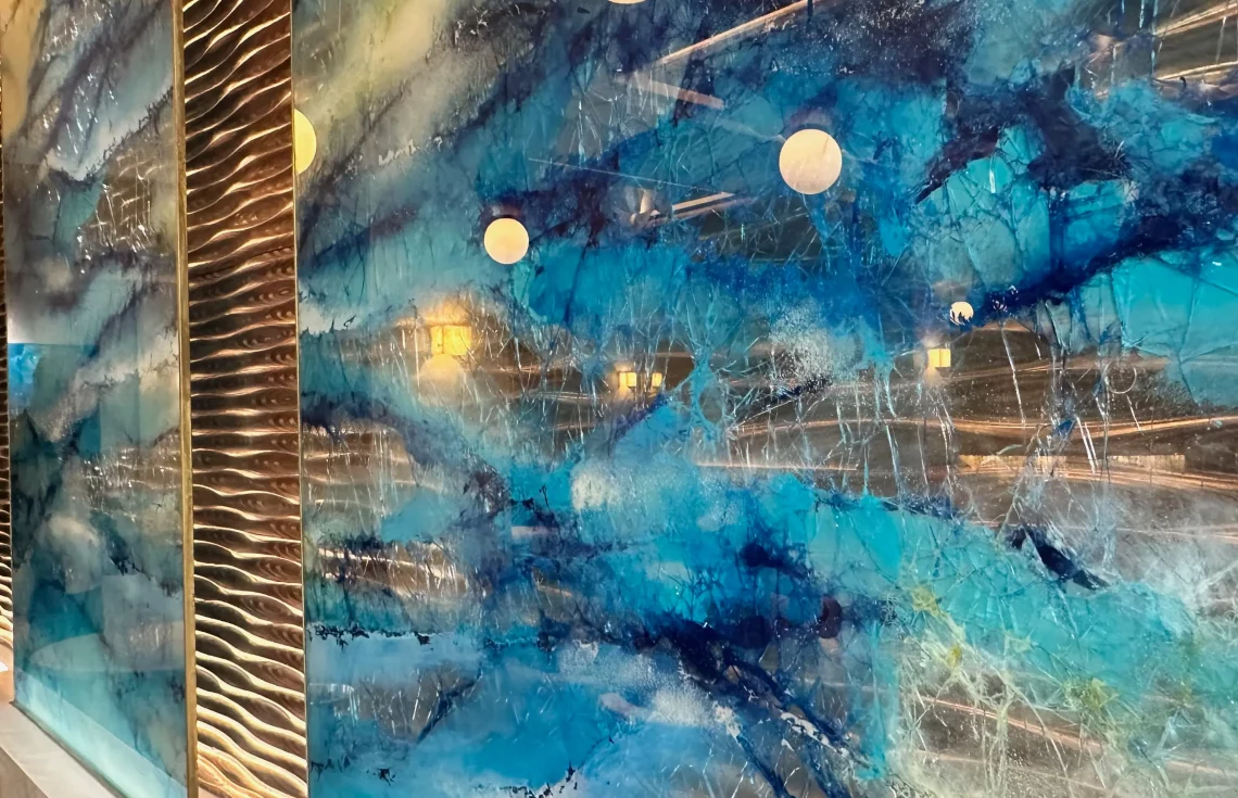 Adding a unique sensory dimension, Ionian Symphony is illuminated with lighting that changes in warmth and tone throughout the day. The shifting light recreates the natural progression of time, allowing the artwork to transform as the world outside does—cool and tranquil in the morning, vibrant under midday light, and softly golden at dusk.